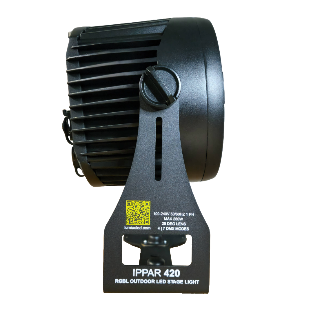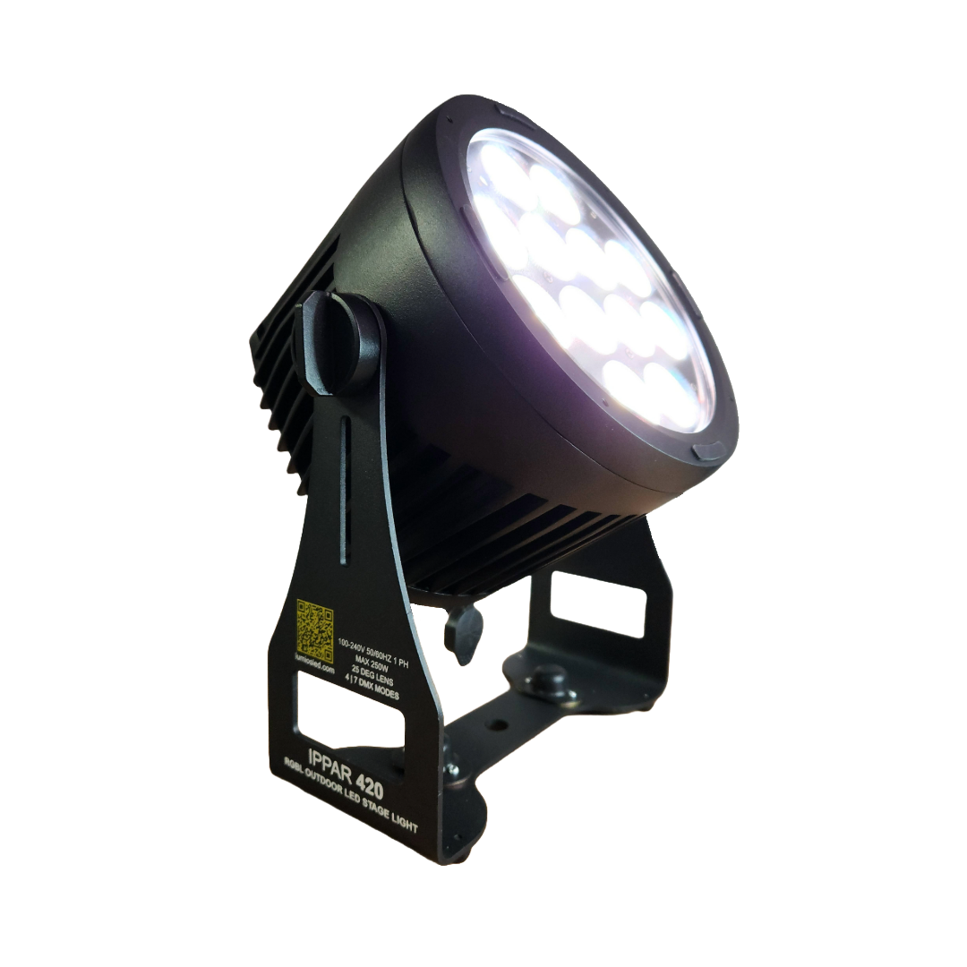 The IPPAR 420 is a flexible 240W IP rated LED wash fixture that delivers full-spectrum color with RGB+Lime LEDs. The optical system allows 25° or 40° beam angle operation by using an optional quick-mount magnetic diffuser lens. Ideal for indoor or outdoor professional lighting.