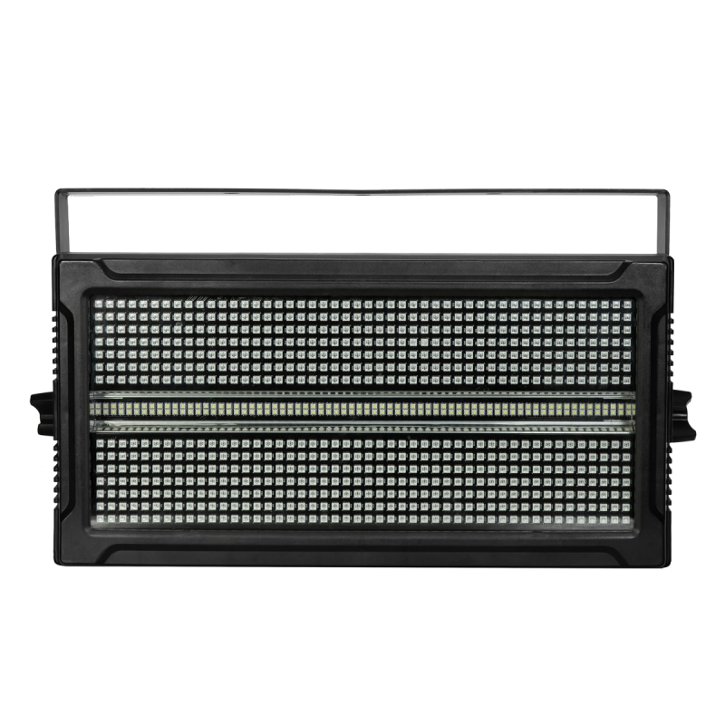 The NUKE62™ is a bright multi-purpose LED flood / blinder / strobe. Featuring 672 RGB LEDs and 140 high-power cool white LEDs, it boasts a high power output as a strobe or wash fixture. Stepless color blending, 3-IN-1 functionality, and 96-zone RGB pixel effects makes the NUKE 62 perfect for installations and rugged enough for production use.